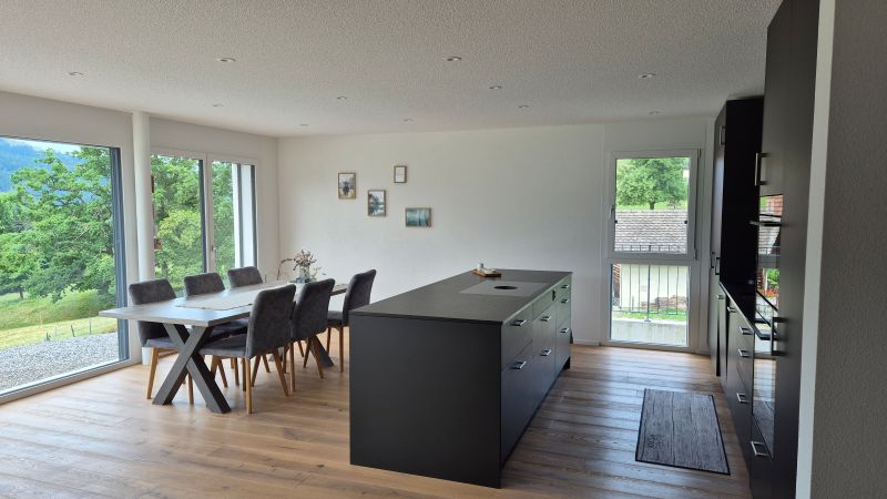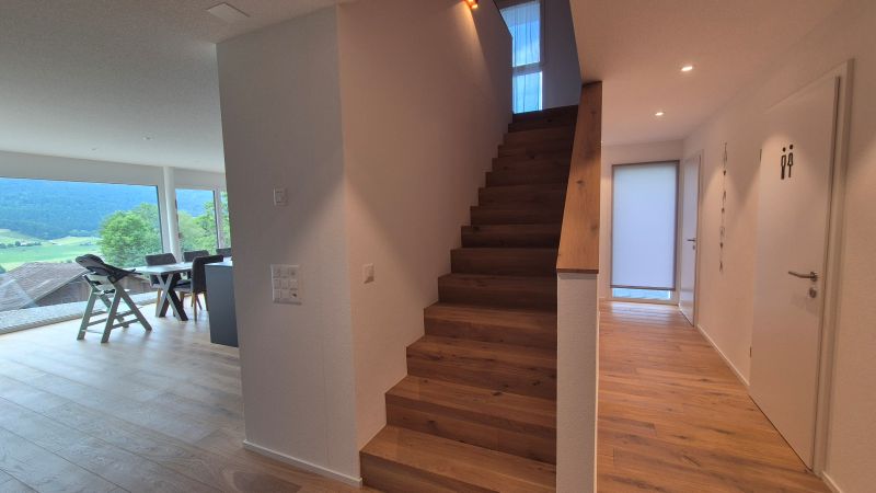 Die Architektur setzt auf klare Linien und eine durchdachte Raumstruktur. Grosszügige Fensterflächen öffnen den Wohnbereich zur Landschaft und lassen viel Tageslicht ins Haus.