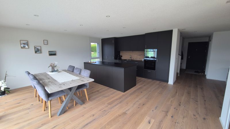 In Brünisried entstand ein modernes Einfamilienhaus, das sich harmonisch in die ländliche Umgebung einfügt. Grosszügige Fensterflächen, offene Wohnbereiche und eine klare Architektur schaffen helle Räume und eine angenehme Wohnatmosphäre.