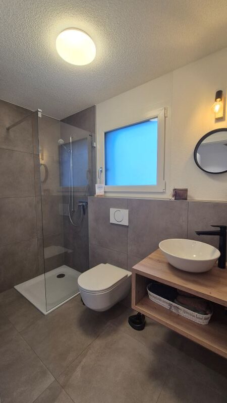 Ergänzt wird das System durch eine Photovoltaikanlage, die einen Teil des Strombedarfs direkt vor Ort produziert und so zur energieeffizienten Nutzung des Hauses beiträgt.
