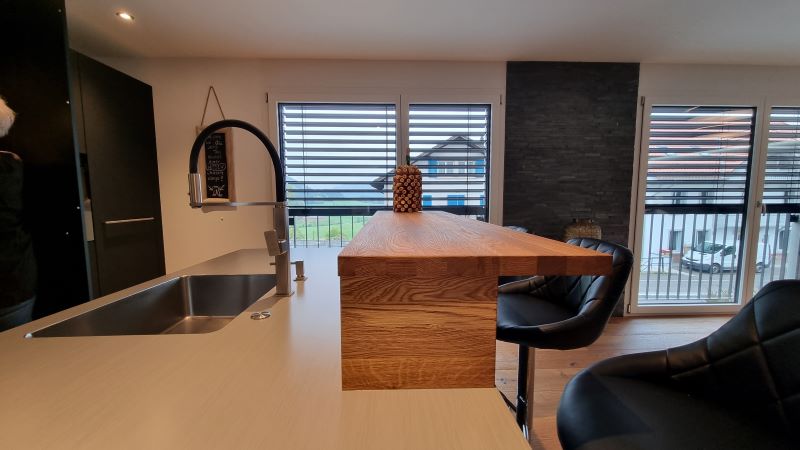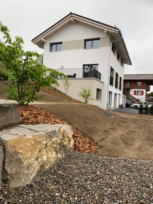 In Rechthalten entstand ein modernes Einfamilienhaus in Massivbauweise, das durch eine fein abgestimmte Farb- und Materialkomposition geprägt ist. Der klare Baukörper wirkt ruhig und präzise – Nuancen in Weiss, Grau und Anthrazit verleihen dem Gebäude Tiefe und eine eigenständige Identität.